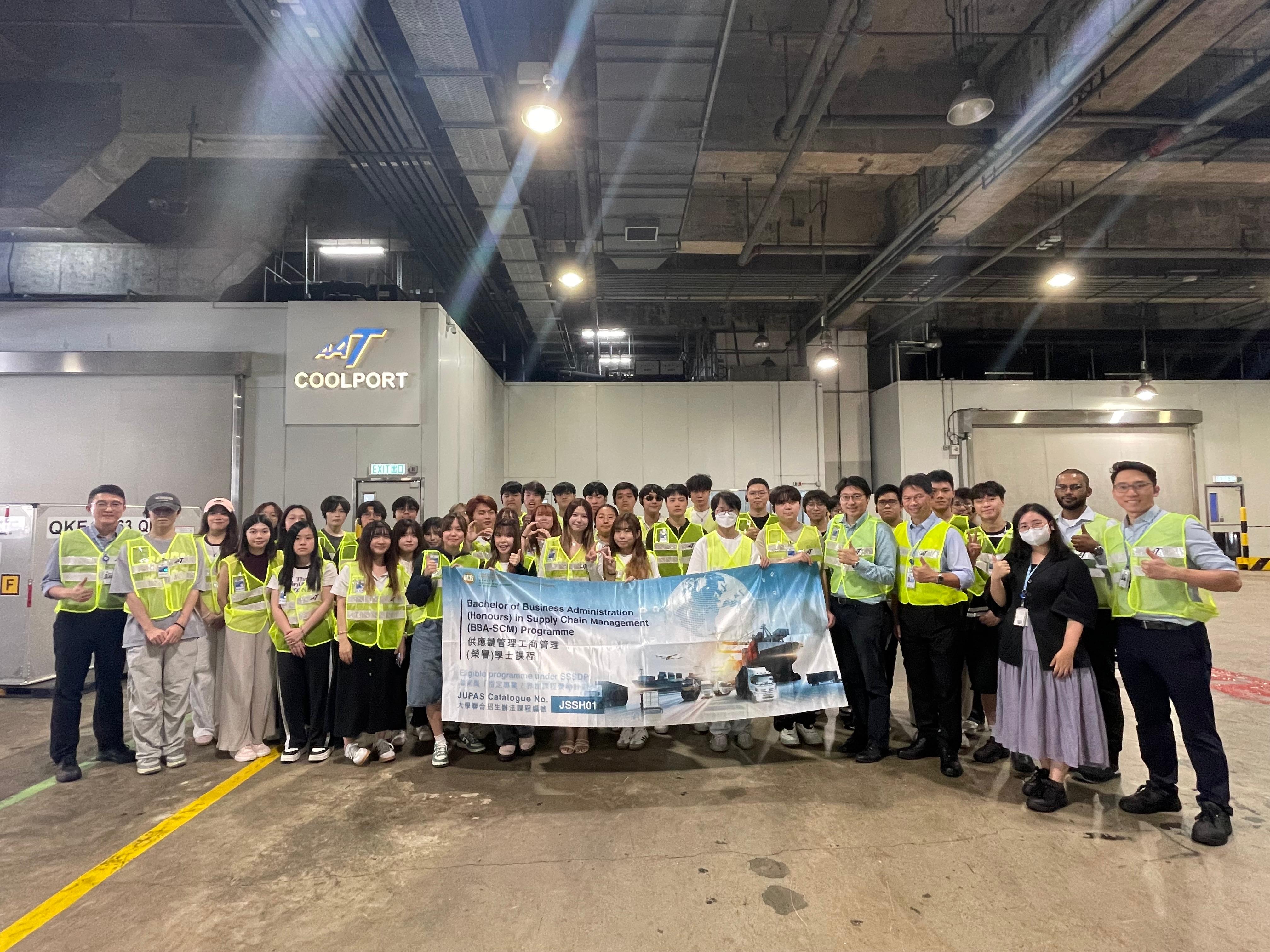 供應鏈及資訊管理學系在2025年10月13日帶領約40位供應鏈管理工商管理學士課程的同學參觀亞洲空運中心 (AAT)。同學可藉此機會對亞洲空運中心的日常運營有更深入的了解。