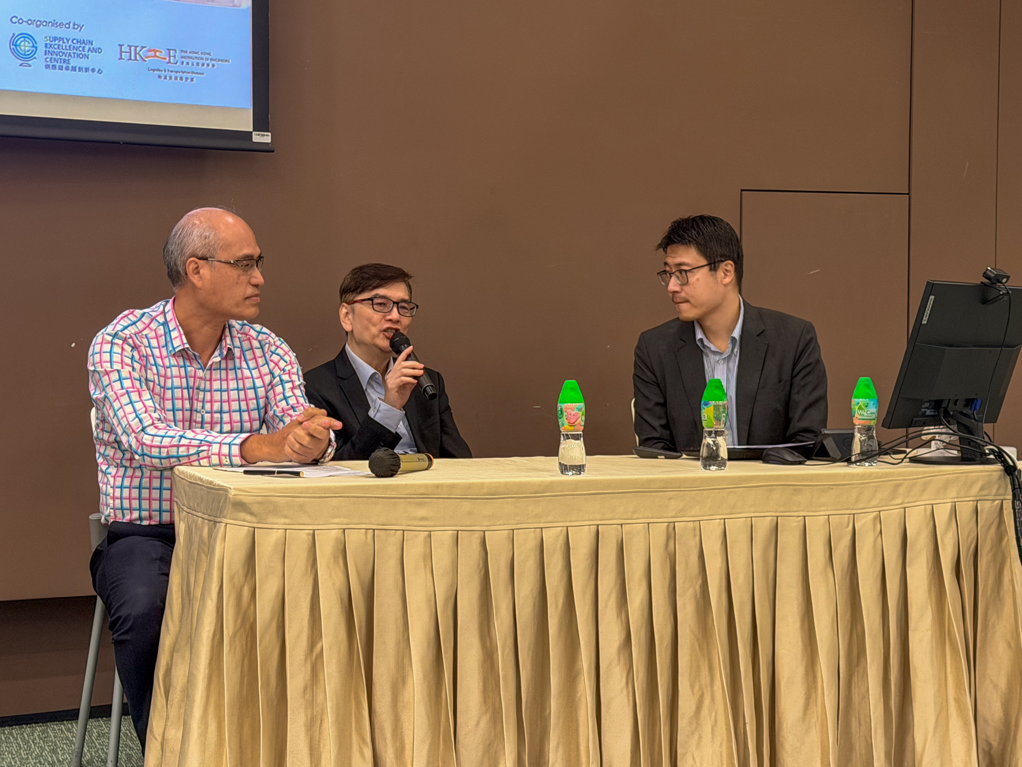 Following Mr. Mui’s sharing, a theme discussion session was moderated by Dr Eugene WONG, Associate Professor of HSUHK and Mr. Alan Lo, Lecturer of HSUHK. During the discussion, Mr. Mui shared his insight on serval topics, including international express services under an uncertain trading landscape, the role of technology and robotics in express logistics, as well as environmental sustainability, renewable energy, and Scope 3 emissions in express services.