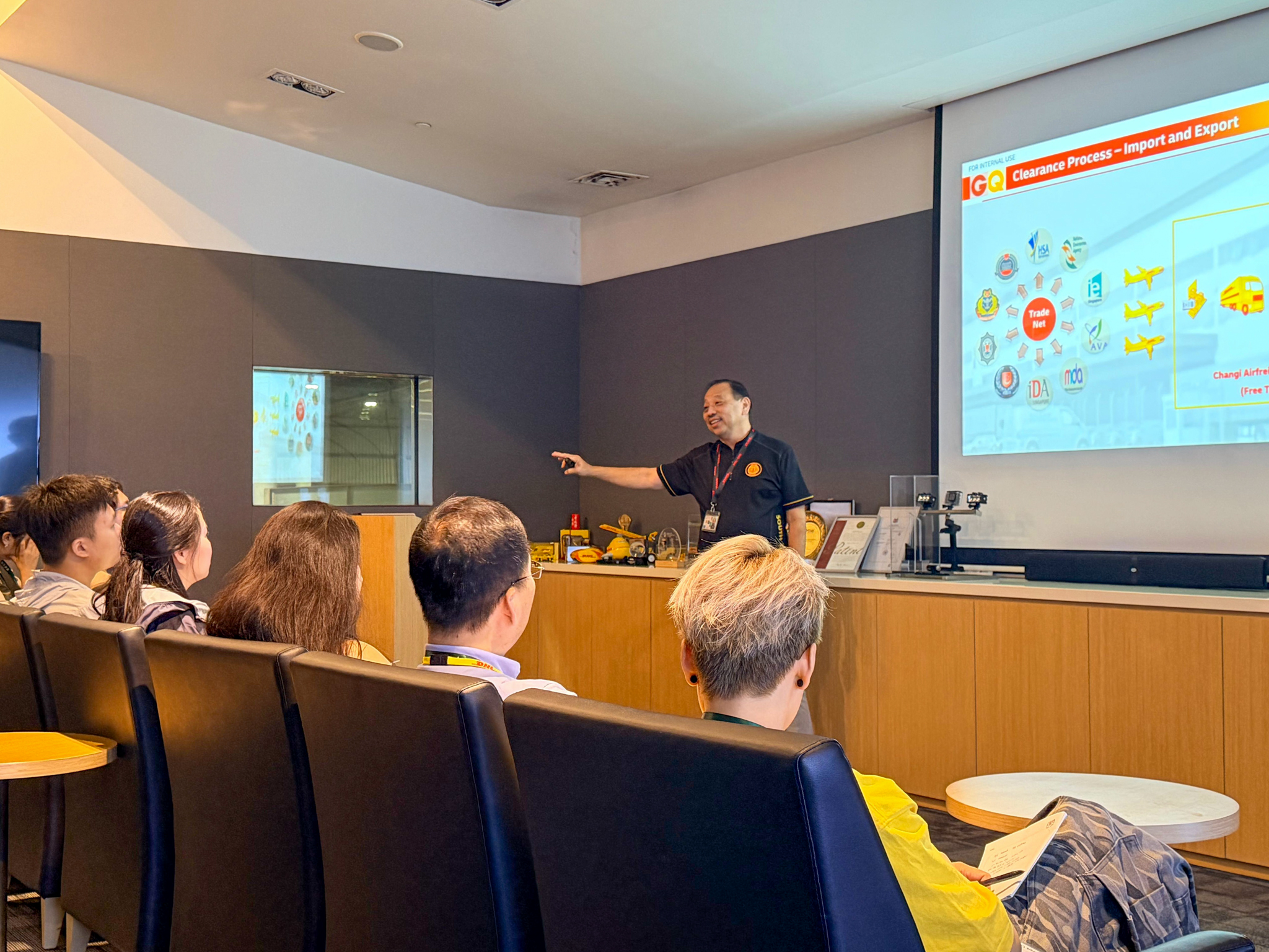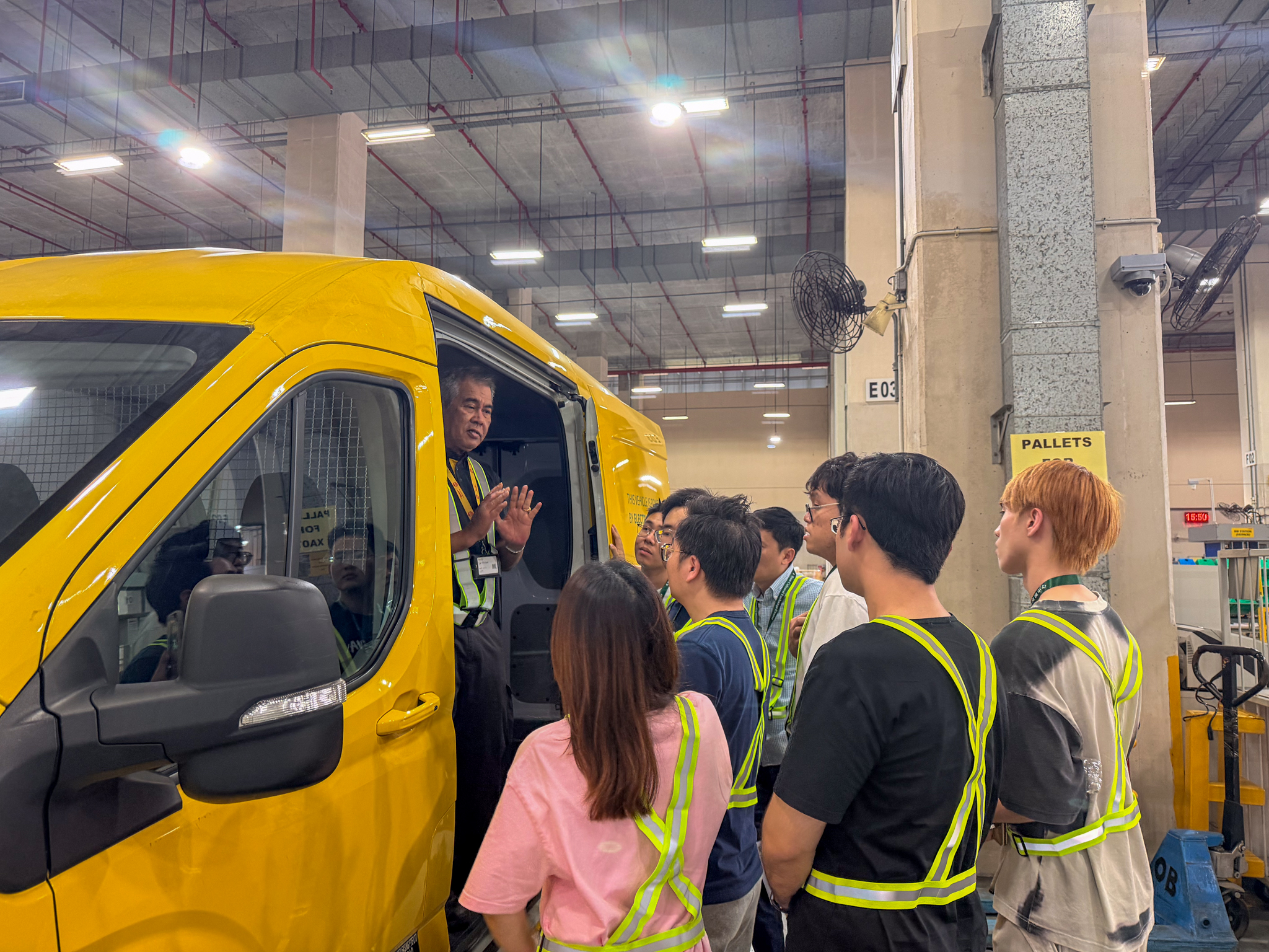 Led by Mr TAN Siong-Buck (COG Manager of General Office) and his team, the students visited the large automated warehouse within DHL’s South Asia Hub. This warehouse employs various advanced technologies to optimize air freight operations. Mr TAN Siong-Buck also provided a detailed explanation of how advanced technologies enhance transportation security, efficiency, and accuracy while demonstrating a commitment to sustainable development