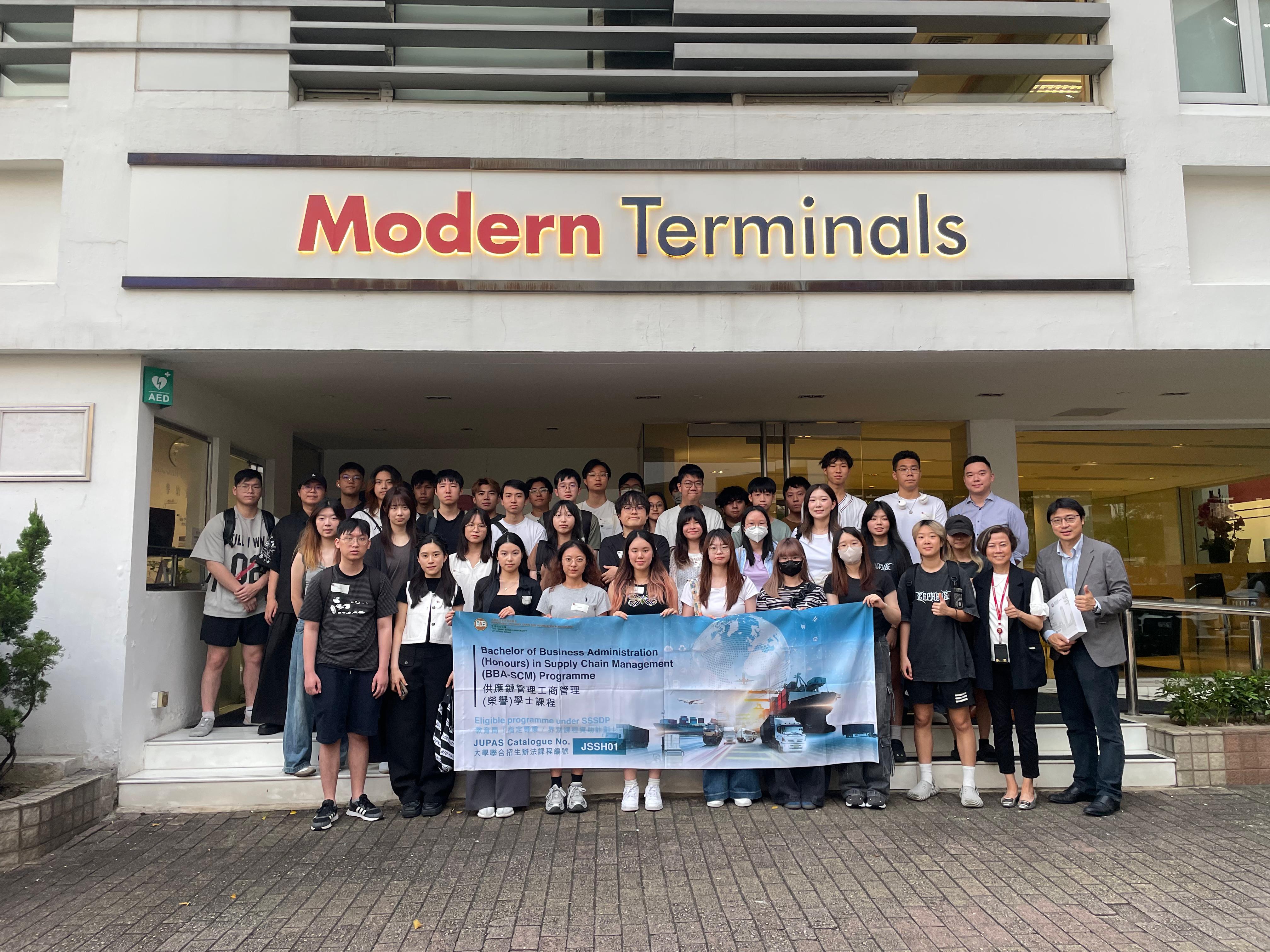 A visit to Modern Terminals Ltd. (MTL) was held on 30 September 2025. Over 30 students from the BBA (Hons) in Supply Chain Management (BBA-SCM) attended the visit. Through the sharing by company representatives, the students gained a deeper understanding of the container storage processes, container yard operations, and the application of automation technology.